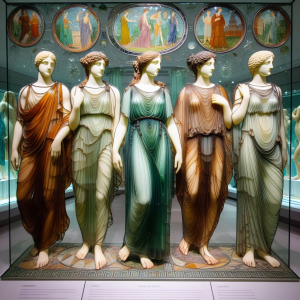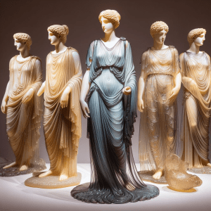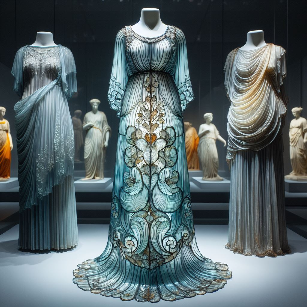 Greek and Roman dresses featured tunics and draped styles, varying in length and layering.