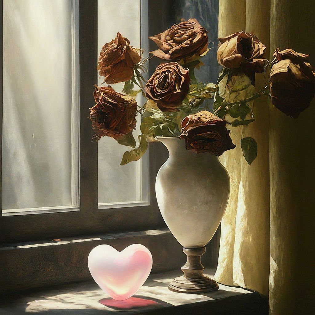 The next morning, the roses were wilted, their color drained. But beside them, the glass heart pulsed with a faint pink glow. The coldness was gone, replaced by a comforting warmth. Amelia knew then that the heart wasn’t just a protector, but a reminder. Sometimes, the greatest act of love is shouldering another’s burden.