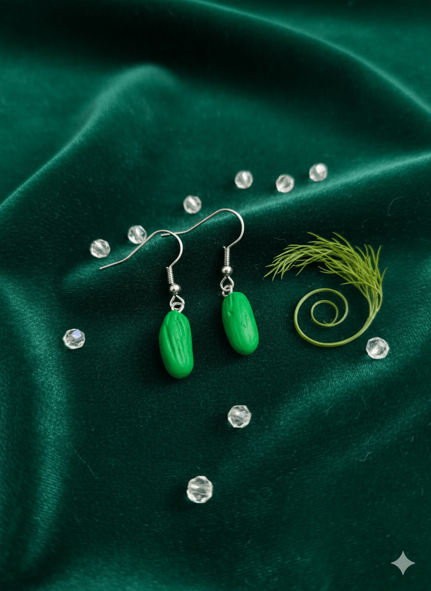 Add a pinch of personality to your style with these handcrafted pickle earrings. Made from vibrant green polymer clay, these tiny gherkins feature realistic textured details that capture the classic “crunch” of your favorite snack.