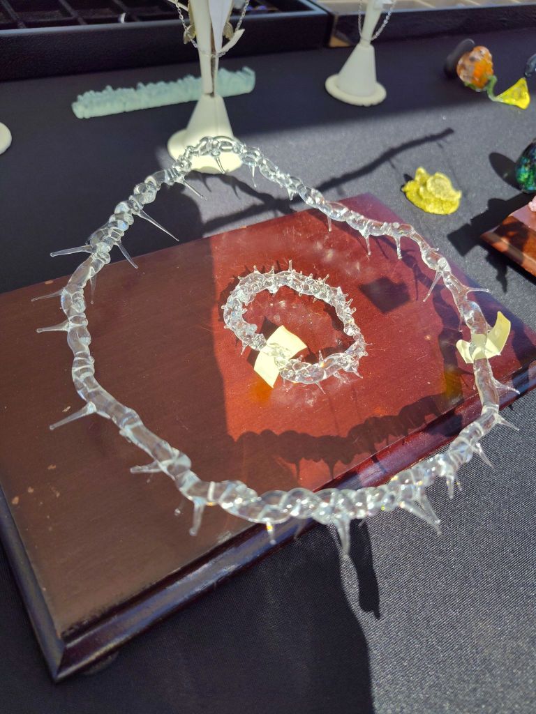 I made a crown of thorns a while ago. I hung on to both of them for a while. I never showed anyone. Then one day I brought the biggest one to a show. After a few people tried it on, the most perfect customer bought it. I sold the small one a couple months ago. I did not want to share it with the whole world because of all the copy cats in the world but here it is.